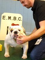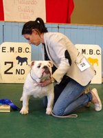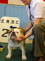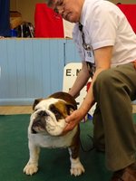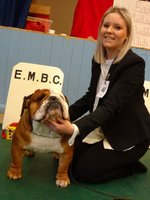 PB (5,2) - 1 Dancer-Farren's Midlandbulls Prim n Proper, 9 months. Nice headed bitch with clear dark eye. Good nostrils and jaw. Nice front and bone, good topline and rib, moved well. 2 Owen's Cymrubul Winter Blues, 10 months, nice flat skull with good ears and eyes, nice front to good feet, nice rib, good angulation, moved well.