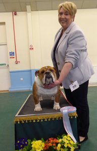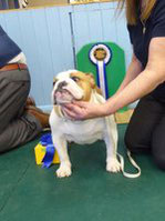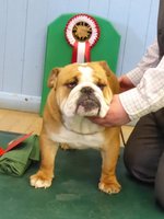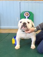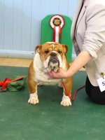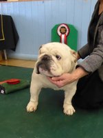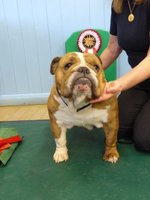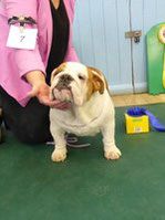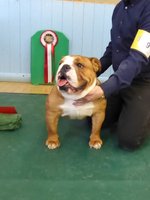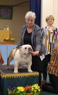 OD (4,3) - 1st. Livingstone's Ruakuri On The Road Again At Jacobella - This is an honest eye-catching bulldog. No exaggeration just a very good all round dog. Lovely front with good bone and both width and depth of chest. Super profile all finished off with a good tail. Excellent brick shaped head with very good mouth, dark eyes and correct ears. His good construction and rear angulation resulted in a super moving dog who kept his lovely topline on the move. Shown in very good condition. BEST IN SHOW.